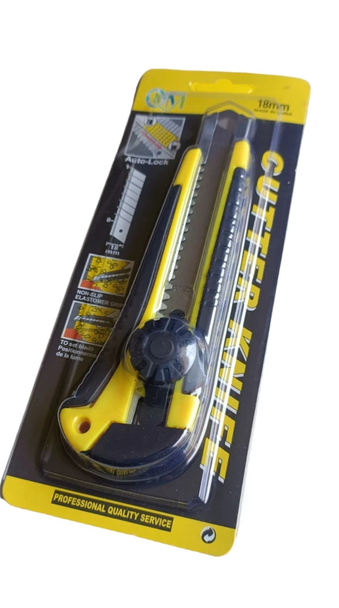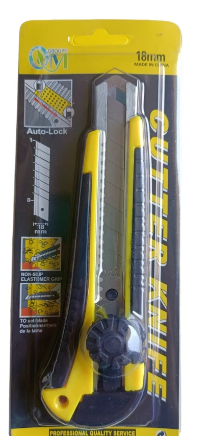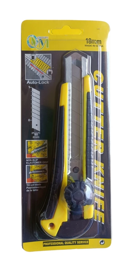OM Group Cutter , 18mm blade , It is use for cutting envelope , food bags , plastic bags , wrapping tape ..etc , Auto lock function