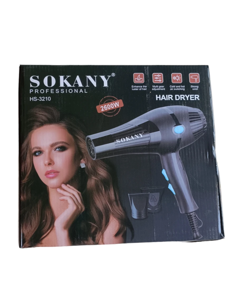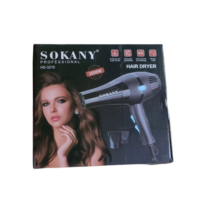 SOKANY Professional Hair Dryer HS-3210 , With centralized nozzle , 2 Speed and cold air functions , 2600W High-power and quick-dry hair